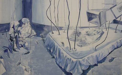 Öl auf Pappe auf Holz, 220 x 358 cm
