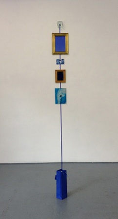 Jördis Hille Wie wir einen angenehmen Gegenstand, der vor uns flieht, gerne verfolgen, so sehen wir das Blaue gerne an, nicht weil es auf uns dringt, sondern weil es uns nach sich zieht, 2013 variable Größe, Lapislazuli, Fotografie, Postkarte, Folie, Tragetasche, Flasche, Band |