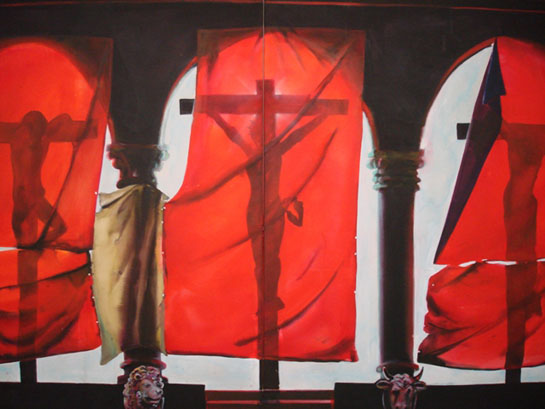 Acryl und Pigmenttusche auf Nessel, 250 x 400 cm
