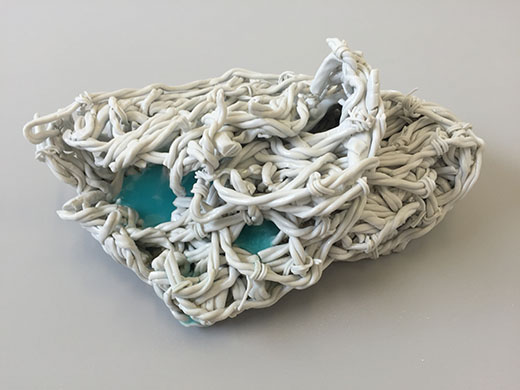 Handbemaltes Porzellan, Stacheldraht, Kunststoff