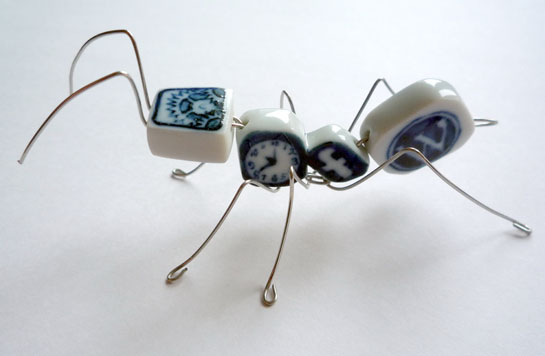 Porzellan, Edelstahldraht, ca. 5 x 8,5 x 2 cm