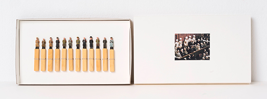Buchsbaum, geschnitzt, bemalt, Papier, 16,7 x 9,7 x 1,3 cm (Schachtel)